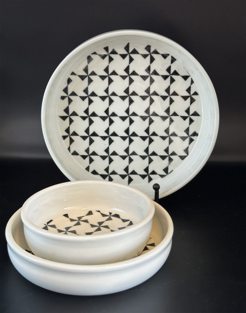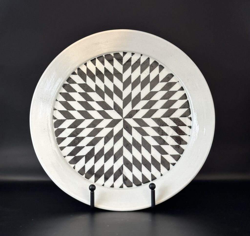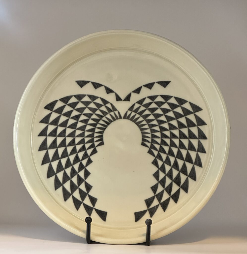 Butterfly Dish, 2023, Hand-painted Black Under-glaze on Porcelain, 10″ diameter
