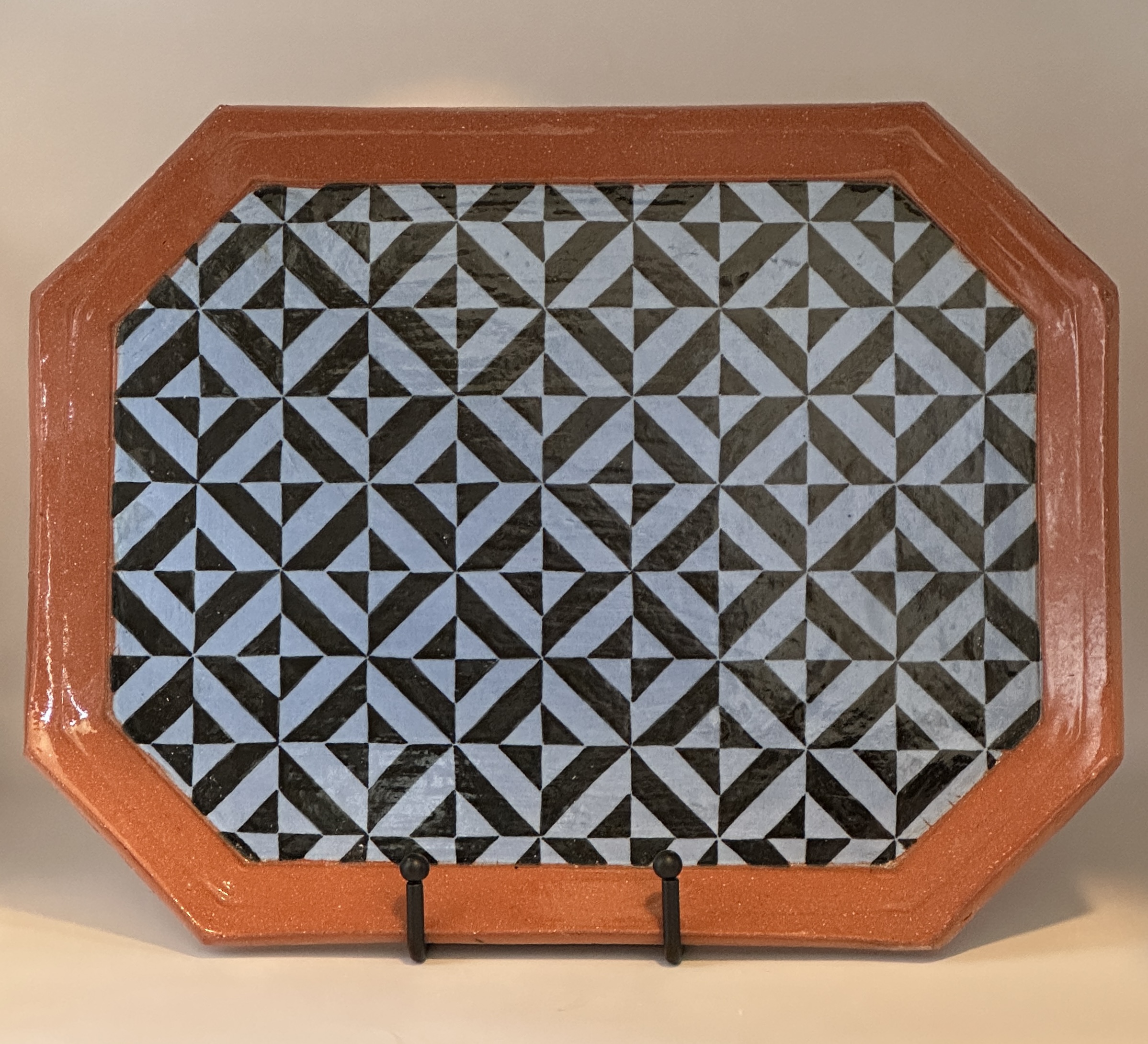David Menorah, Glazed Brown Stoneware (Relief made by linoleum cut), 6 1/2″ x 9 3/4″